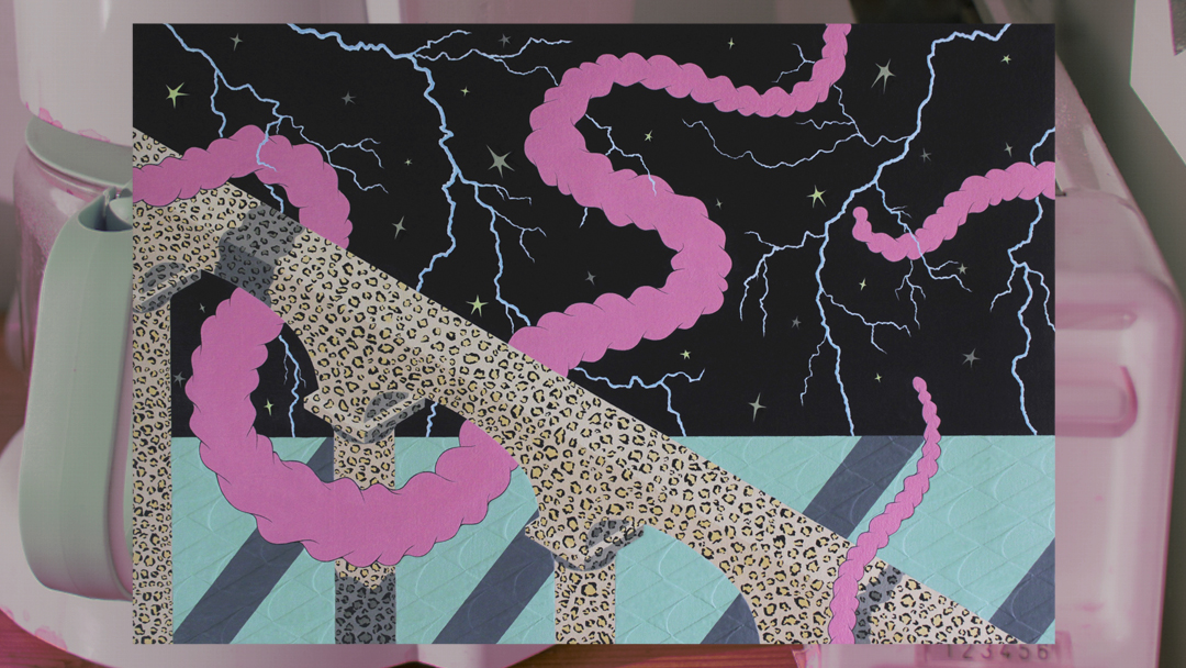 Cotton Candy Snake, 40x60cmPietro Di Corrado was born in Sicily, then moved to Milan, where he lives and works. The artist’s imaginary, fascinated by the history of art, architecture and design, is a continuous cultural hybridization aimed at ri-elaboration and restitution according to a certain logic. With a meticulous escapism, the artist tries to build an stateless and timeless identity in continuous adjustment.